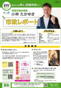 定期的に小林たかゆきの活動や西尾市議会の事をレポートとして発行しています。